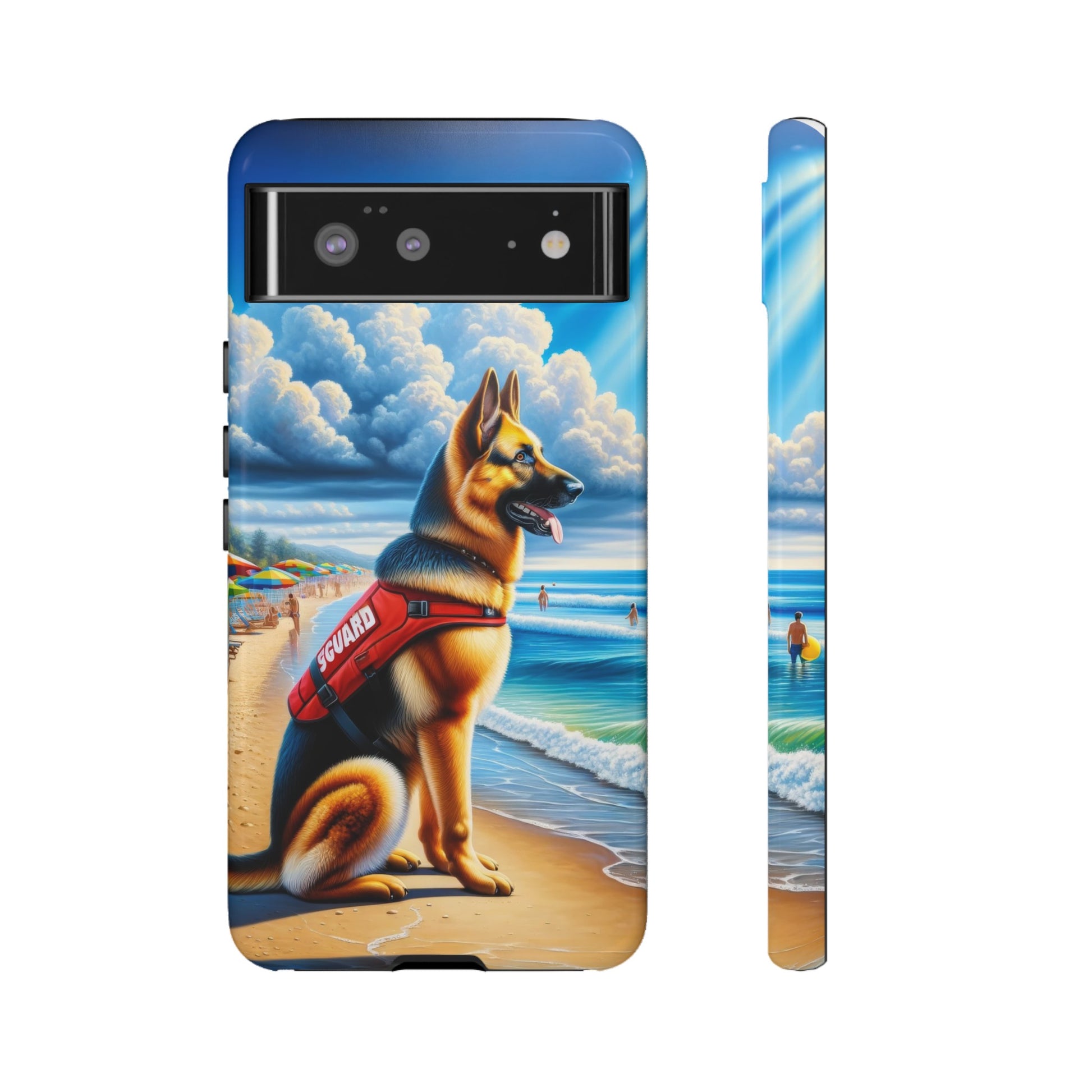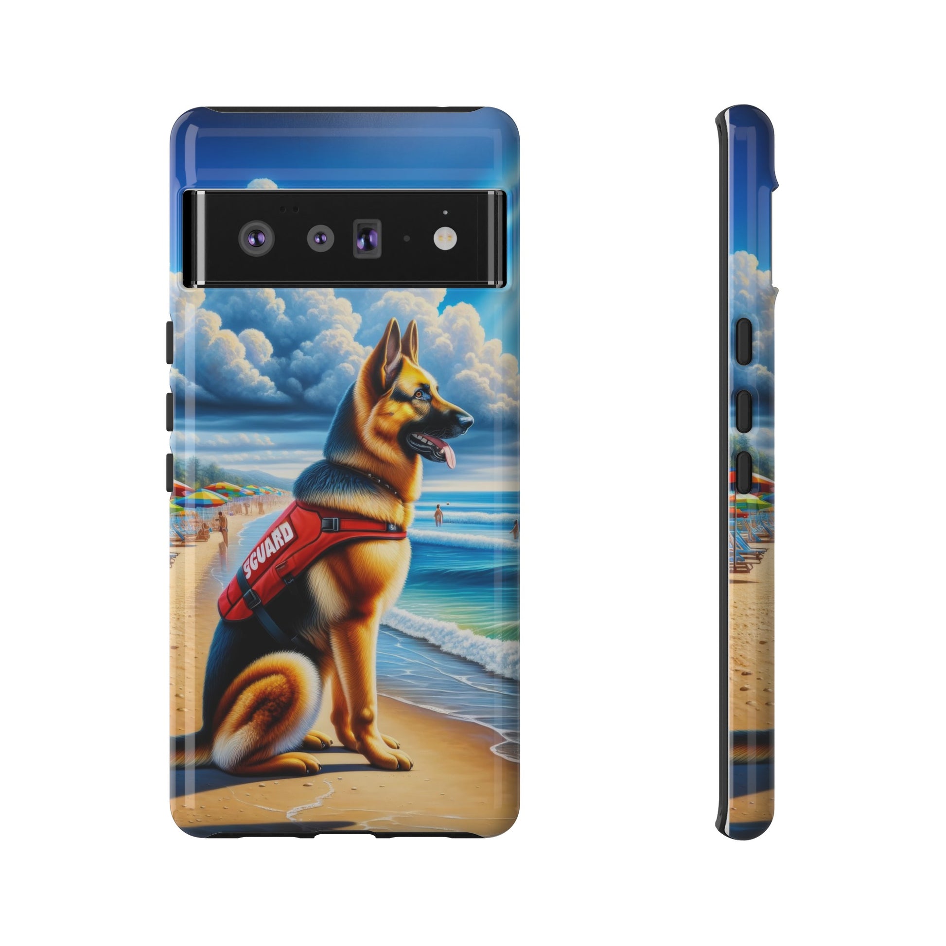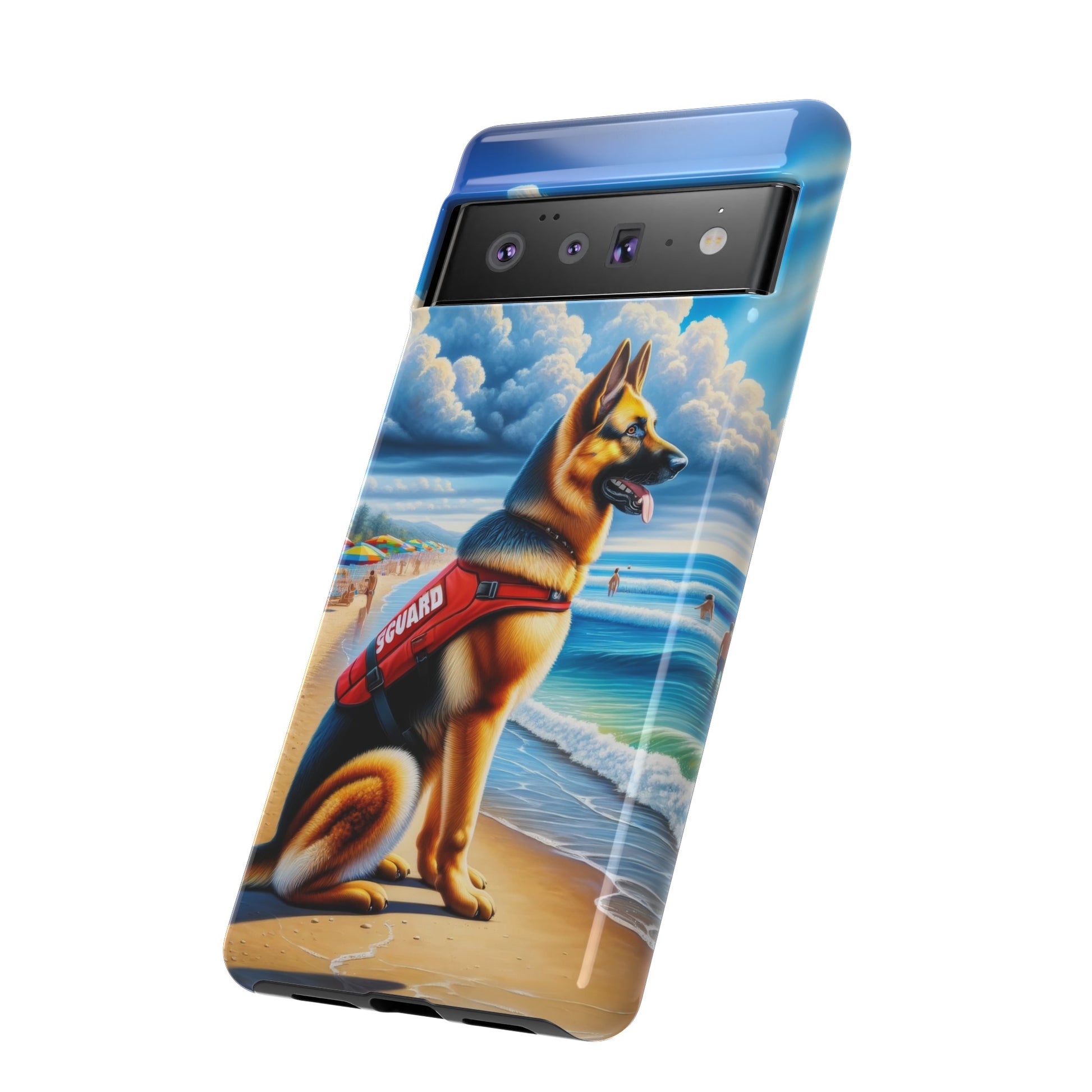 With vibrant colors that capture the essence of beachy bliss, and a German Shepherd hero at the center, this case is for those who adore these noble dogs and a touch of whimsy. Every text, call, or selfie comes with a reminder of your German Shepherd's unwavering loyalty and the playful days spent under the sun. The sturdy design ensures your device stays safe from the tumbles and turns of your adventures, much like a German Shepherd ensures the safety of its pack.